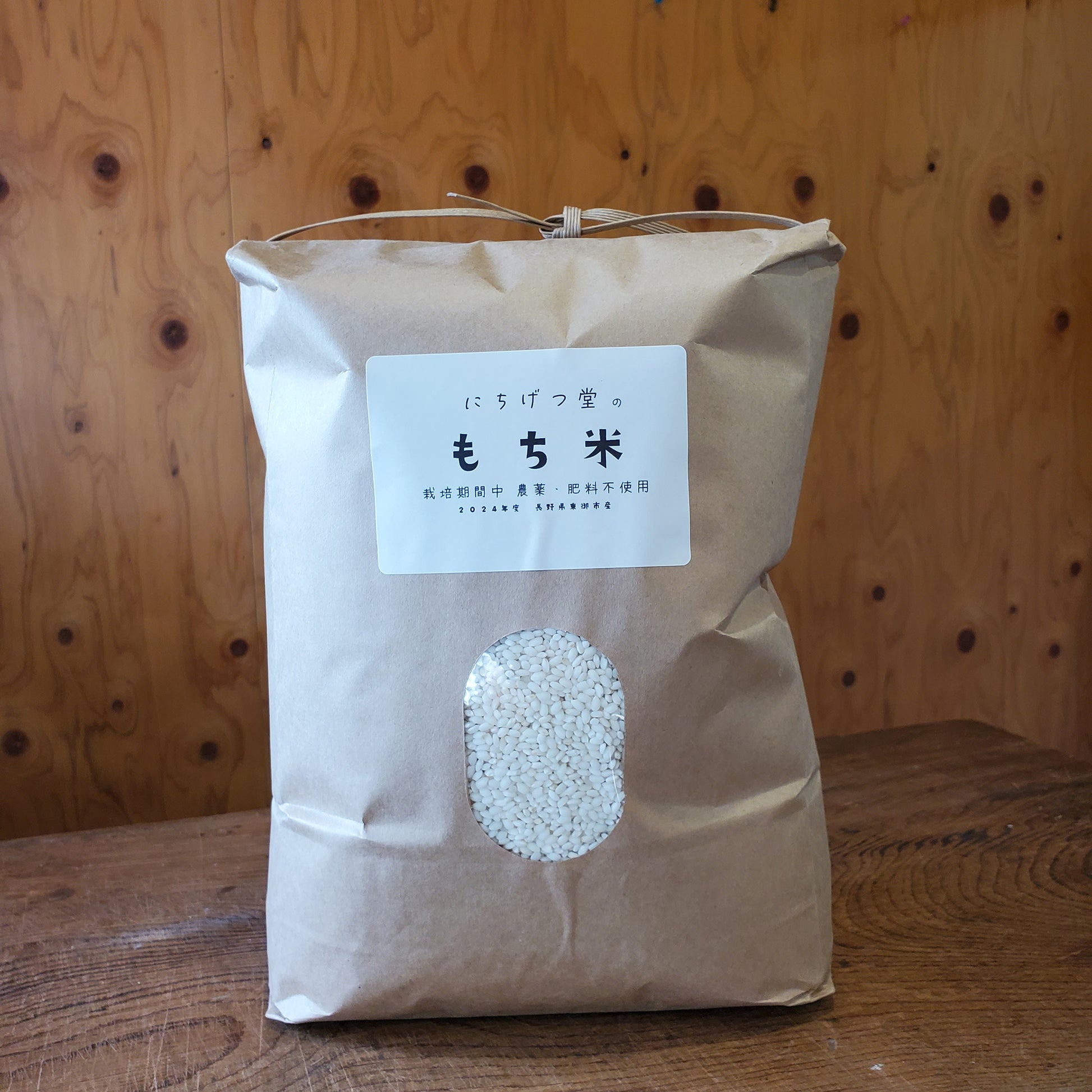 長野県東御市産・無肥料・無農薬で育てたもち米です。品種はもちひかり。