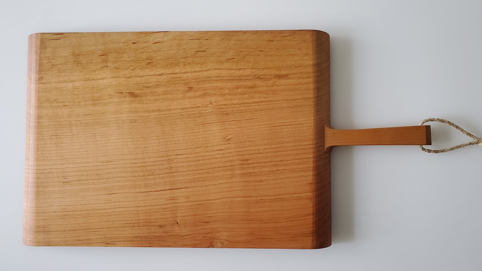 木工作家の松木啓直さんが制作する長野県飯綱町の山桜の木を使用したカッティングボード。